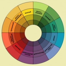 Цветовой круг. Классический цветовой круг разделен на двенадцать секторов, где каждый из них соответствует определенному цвету. Назван такой круг в честь автора – Йохансена Иттена – цветовой круг Иттена. В его основе три цвета: красный, желтый и синий. Далее мы видим три следующих цвета – так называемого второго порядка: фиолетовый, оранжевый и зеленый. Оставшиеся шесть цветов образуются при смешивании основных: сине-зеленый, желто-зеленый, красно-оранжевый и т.д.